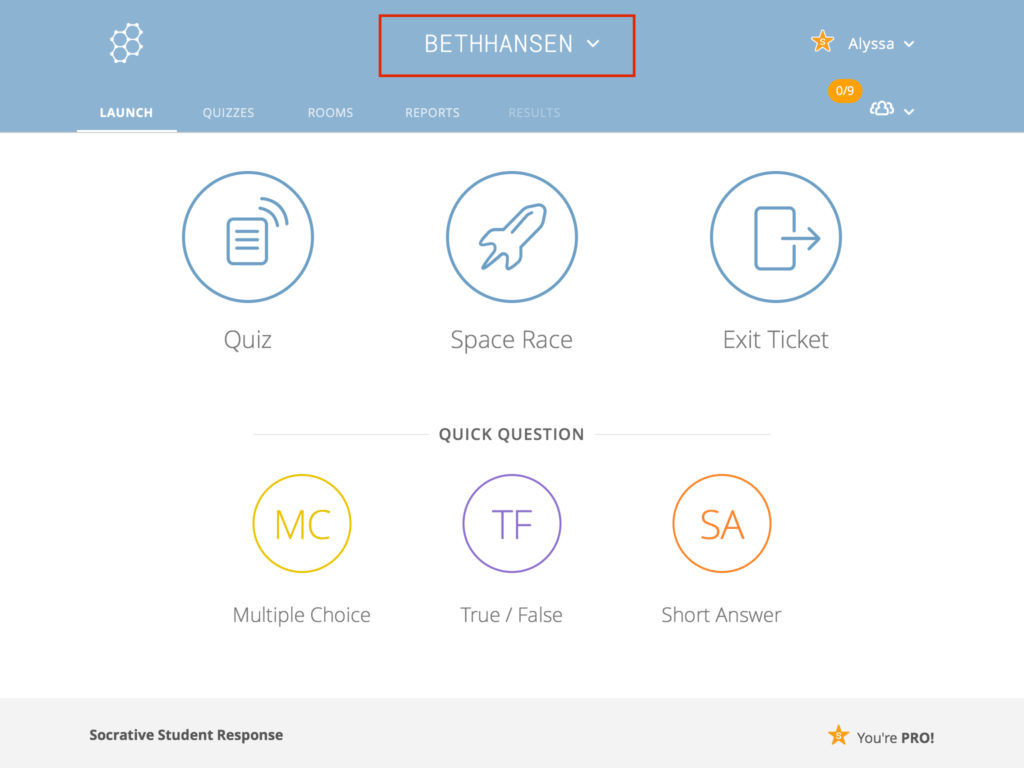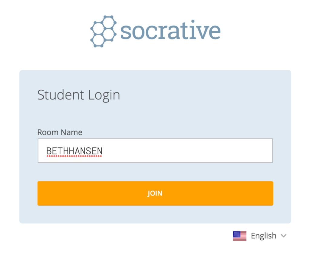 - Log into Socrative and grab the room name from the top of the screen, i.e. BETHHANSEN.